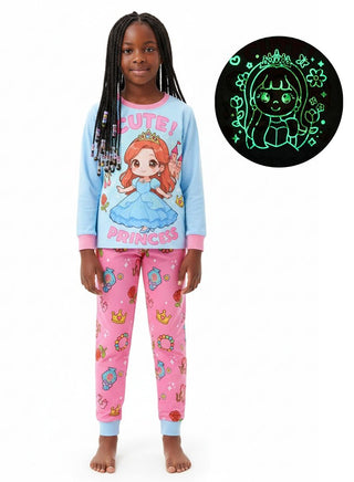 Cute Princess Castle Girls Glow in the dark Pajama Set