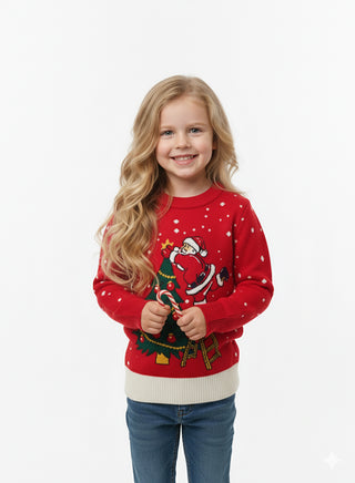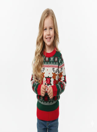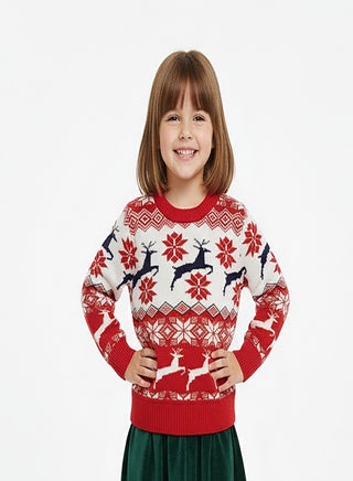 Kids Red Reindeer Fair Isle Christmas Sweater