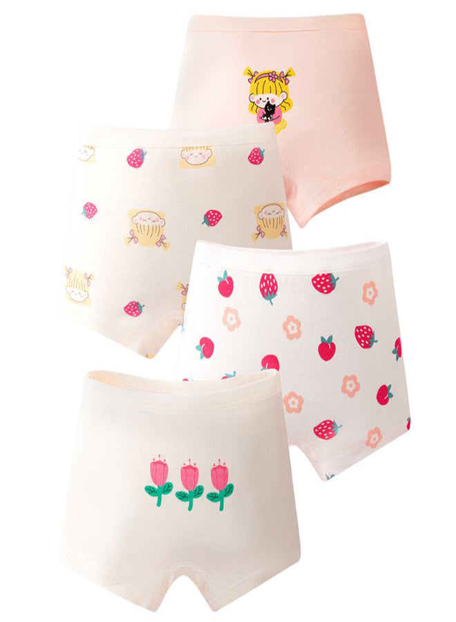 Girls Cotton Strawberry Floral Print Brief Pack of 4