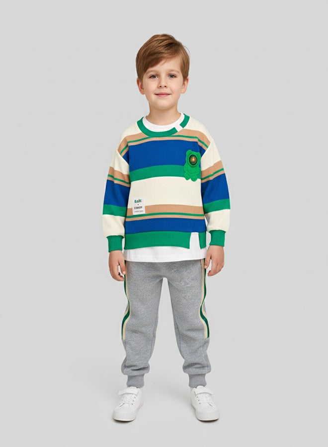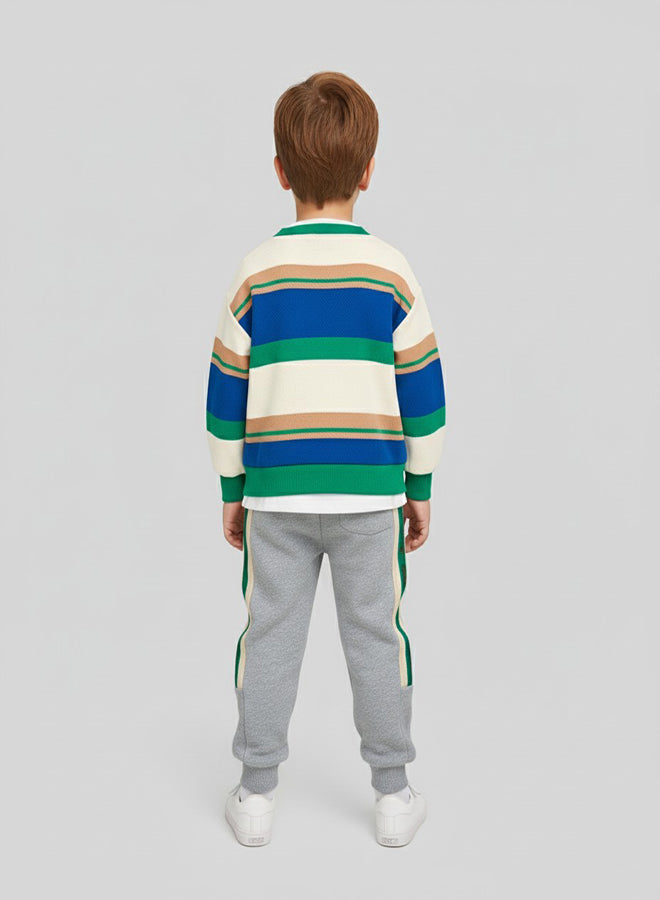 Keep your little boy cozy and stylish this winter with the Striped Bear Patch Sweatshirt and Joggers set. Featuring a charming bear patch and classic stripes, this outfit combines playful design with warmth. Soft, comfortable fabric ensures all-day comfort, while the matching joggers provide ease of movement for active days. Perfect for chilly days, this set is an ideal blend of function and fun to keep your child snug and looking great.