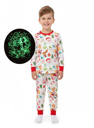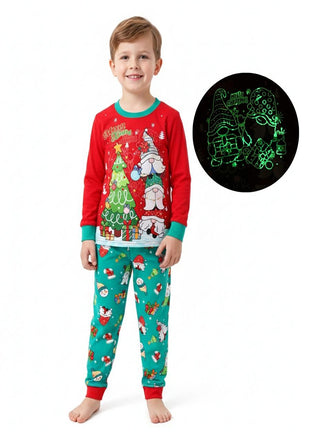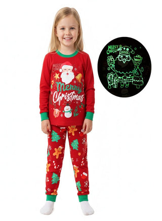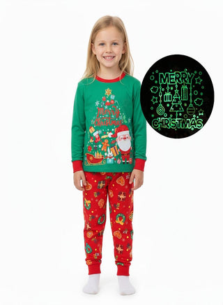 Unisex Green Santa Glow Christmas Pajama Set Kids