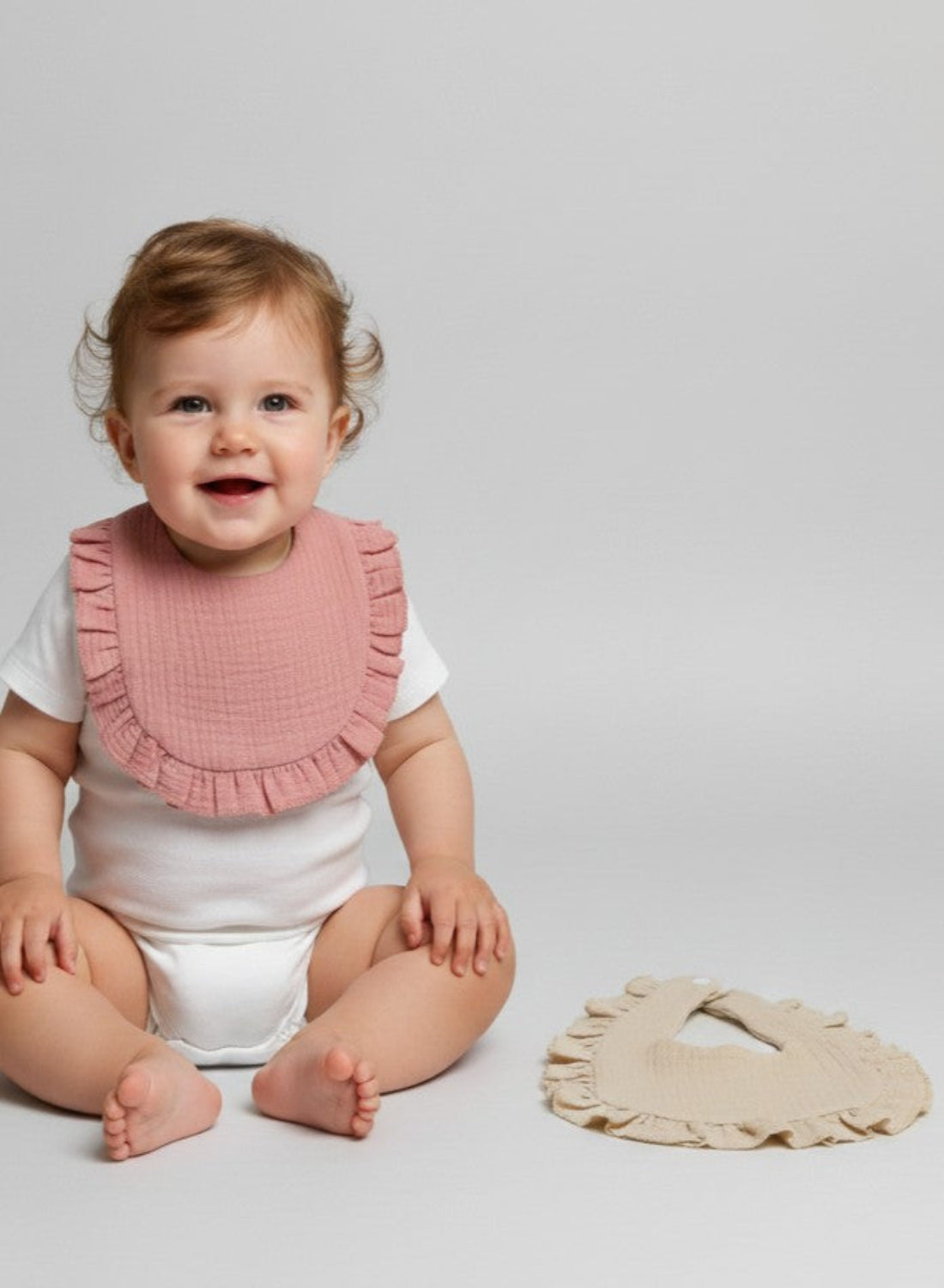 Add elegance to your baby’s essentials with this frill muslin bib set. Crafted from ultra-soft, breathable cotton, these bibs are gentle on delicate skin and highly absorbent for drool and spills. Designed with charming ruffle details, they offer the perfect blend of style and functionality for everyday wear.