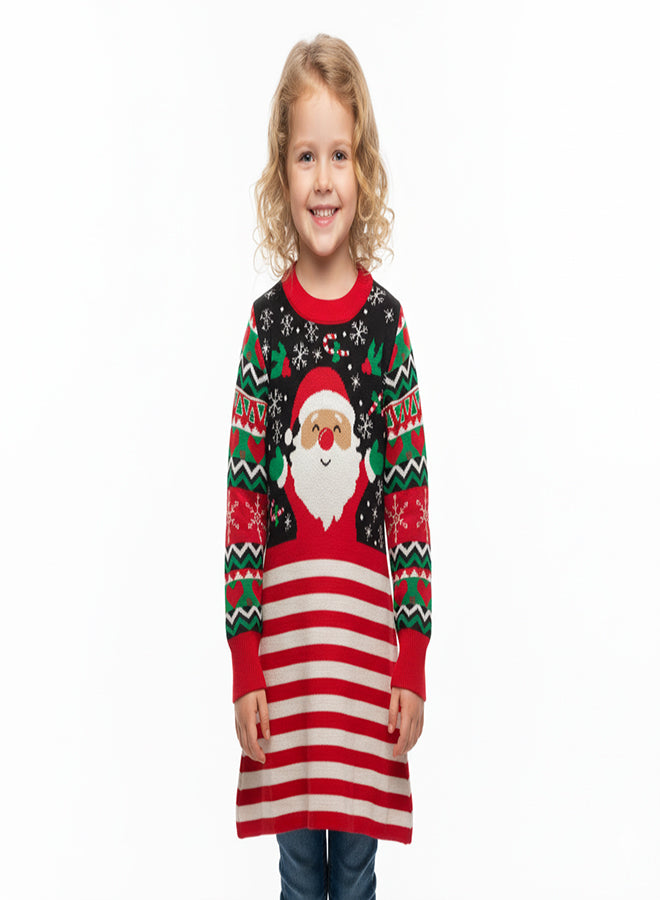 Santa Face Striped Knit Christmas Dress