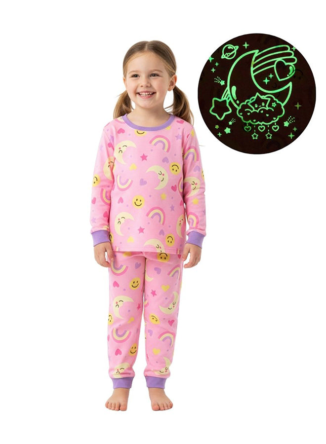Rainbow Print Girls Glow in the dark Pajama Set