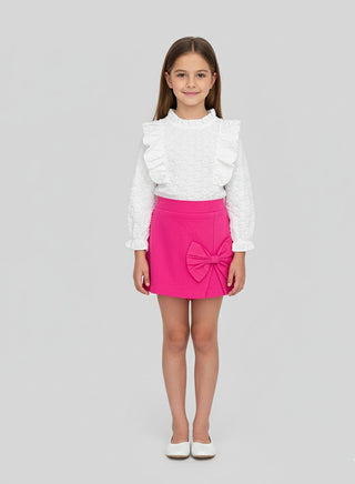 White Ruffle Top With Hot Pink Bow Shorts