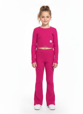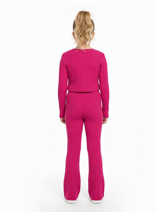 Hot Pink Ribbed Flared Winter Co-ord Set