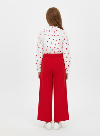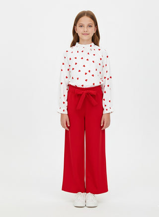 Red Heart Print Top With Flared Pants