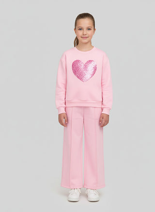 Pink Glitter Heart Tracksuit For Girls