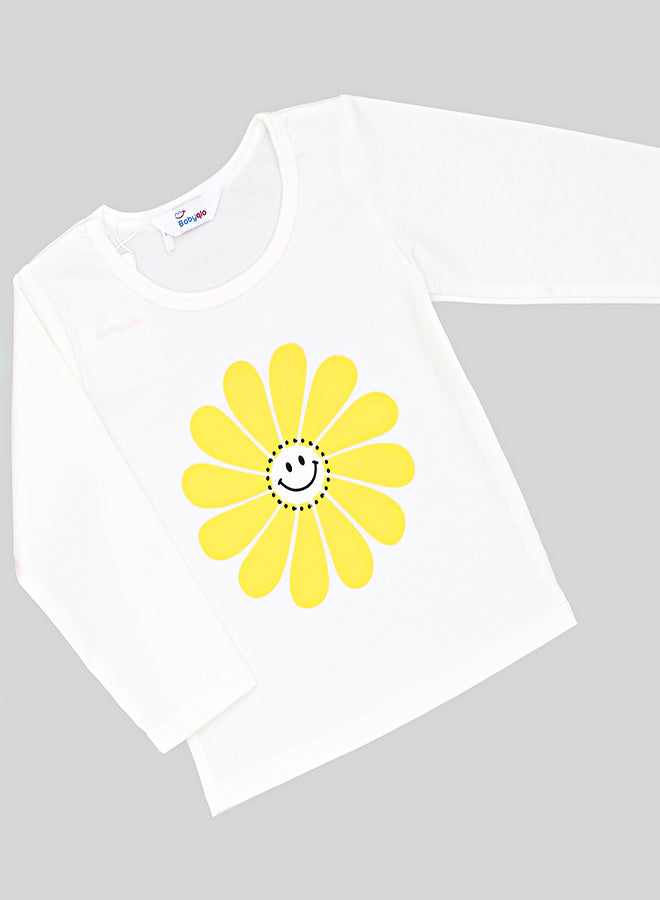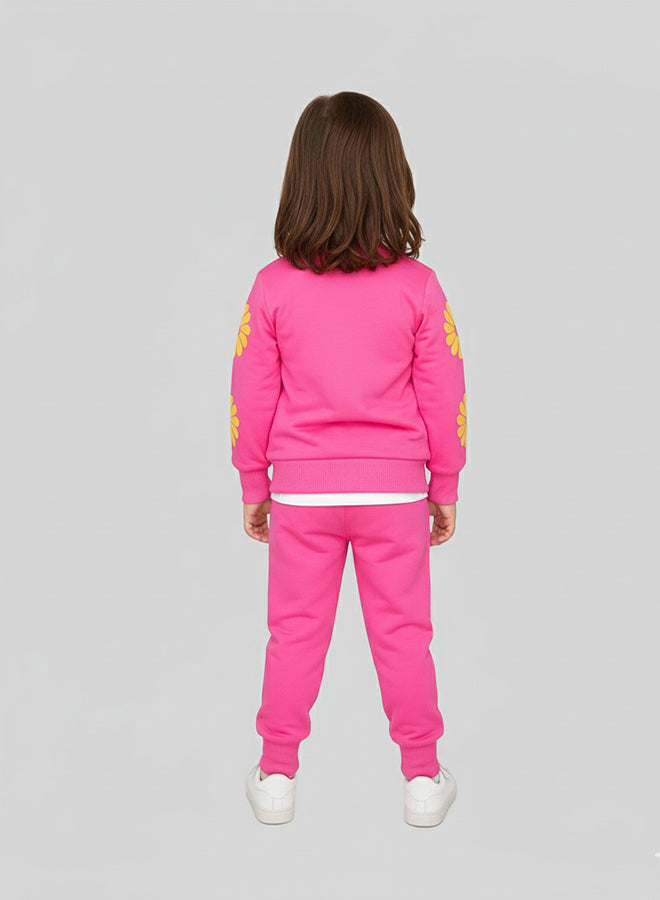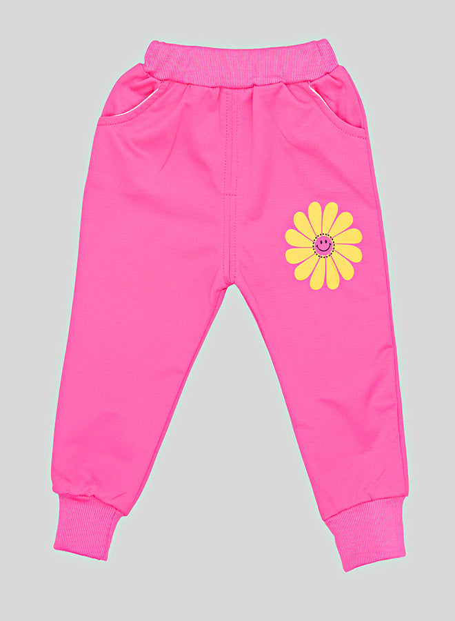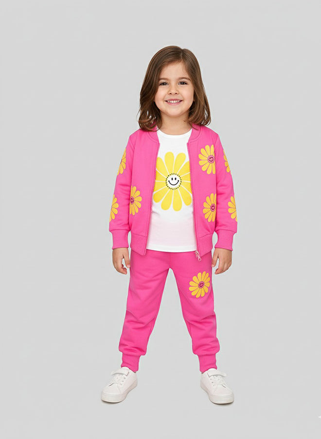 Pink Smiley Daisy Print Tracksuit For Girls