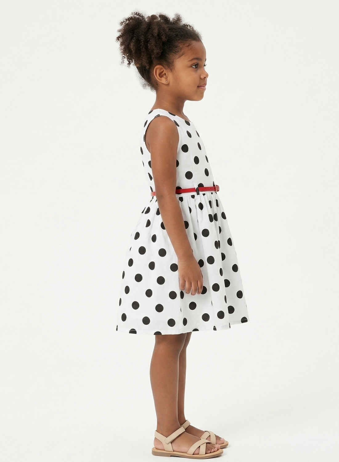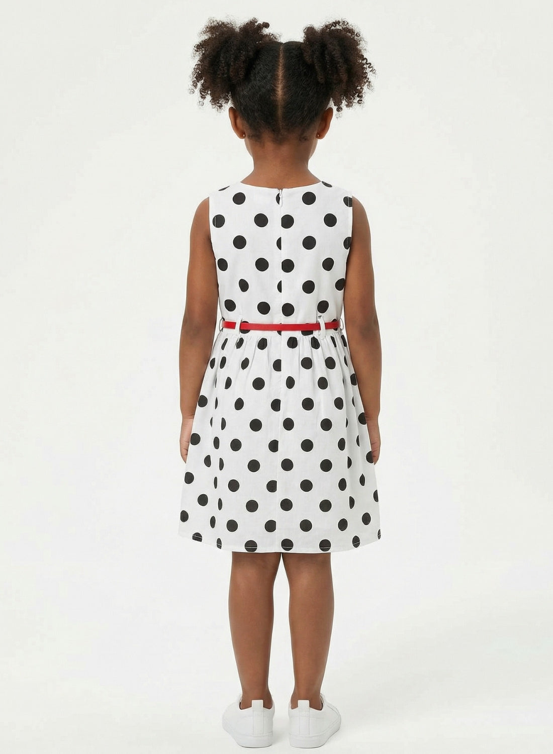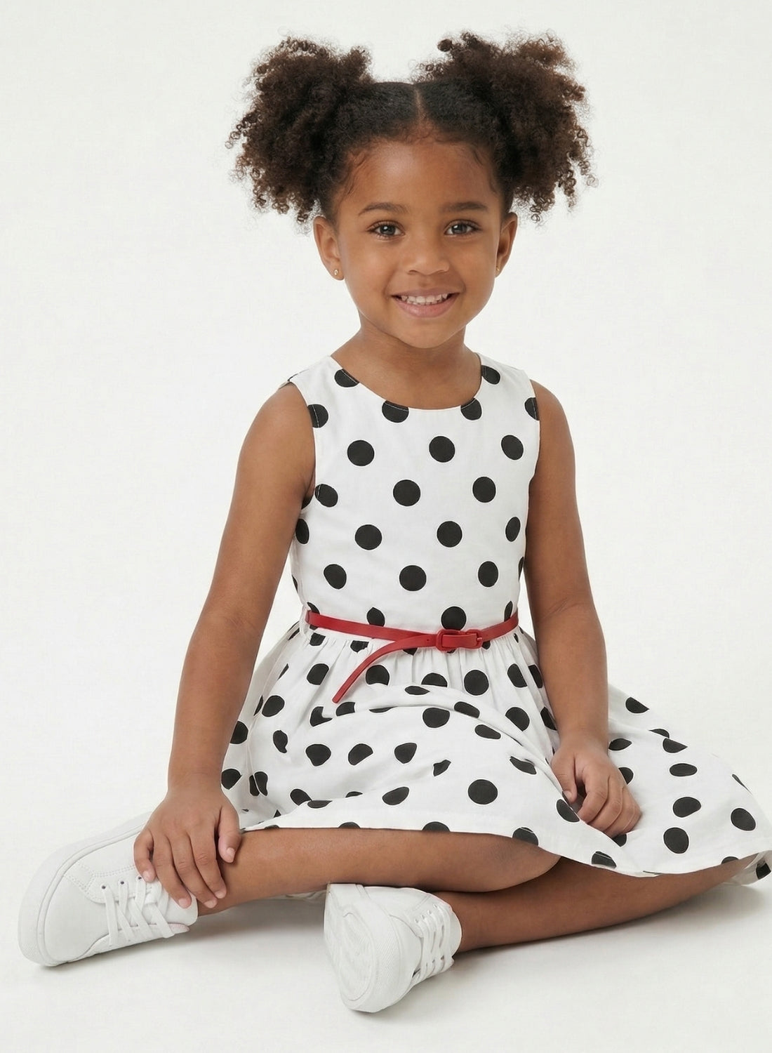 This elegant sleeveless dress is designed for timeless style and comfort. Featuring a clean, minimal silhouette with a chic red belt accent, it adds a sophisticated touch to your little girl’s wardrobe. The soft, breathable fabric and gently flared skirt ensure ease of movement, making it perfect for both casual outings and special occasions.